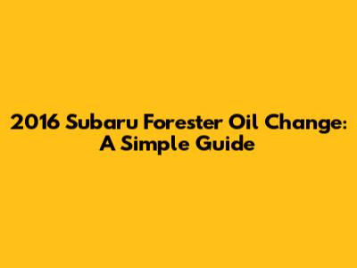 2016 Subaru Forester Oil Change: A Simple Guide