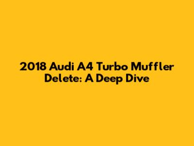 Hey guys! So, you're curious about doing a turbo muffler delete on your 2018 Audi A4, huh? Awesome! You've come to the right place. This guide is going to break down everything you need to know about this modification – from what it is, to why you might want to do it, and how to go about it. We'll cover the benefits, potential drawbacks, and even touch on the installation process. Buckle up, because we're about to dive deep into the world of Audi A4 turbo upgrades!