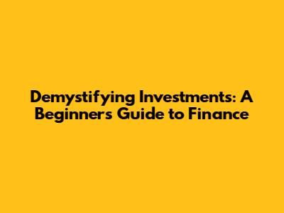 Demystifying Investments: A Beginner's Guide