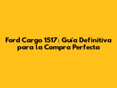 Ford Cargo 1517: Tu Guía Completa Para La Compra Inteligente