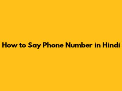 How To Say Phone Number In Hindi