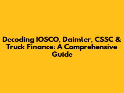 Hey guys! Ever stumbled upon the acronyms IOSCO, CSSC, and the name Daimler while diving into the world of truck finance and felt a bit lost? You're not alone! The financial world can seem like alphabet soup sometimes, but don't worry, we're here to break it all down in a way that's easy to understand. Let’s dive into the roles, connections, and significance of these entities in the global financial landscape, especially concerning truck financing.