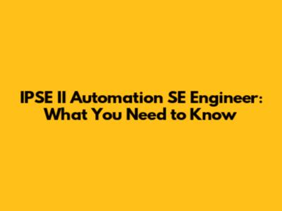 IPSE II Automation SE Engineer: What You Need To Know
