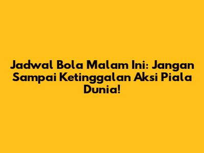 Piala Dunia adalah ajang yang sangat dinantikan oleh para penggemar sepak bola di seluruh dunia. Dengan mengetahui jadwal bola malam ini, kalian bisa merencanakan waktu nonton dengan baik dan menikmati setiap detik pertandingan. Jangan lupa untuk selalu update jadwal, dukung tim nasional favorit kalian, dan ciptakan semangat Piala Dunia yang membara. Selamat menonton! Ingat, selalu sportif dan nikmati permainannya!