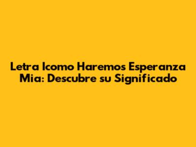 Letra Icomo Haremos Esperanza Mia: Descubre Su Significado