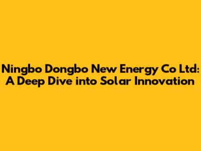 Hey everyone! Let's dive into the world of Ningbo Dongbo New Energy Co Ltd, a company making some serious waves in the solar energy sector. If you're looking for insights into their operations, products, and overall impact, you've come to the right place. We're gonna break down everything you need to know about Dongbo, covering their contributions to the renewable energy landscape, and what makes them tick. So, grab your coffee, sit back, and let's get started!