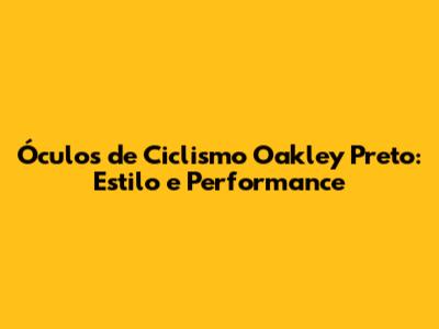 Óculos De Ciclismo Oakley Preto: Estilo E Performance