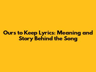 Ours To Keep Lyrics: Meaning And Story Behind The Song
