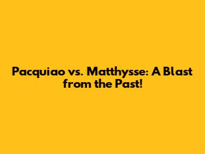 Pacquiao Vs. Matthysse: A Blast From The Past!