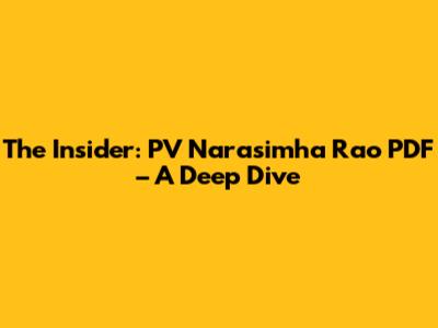 The Insider: PV Narasimha Rao PDF - A Deep Dive
