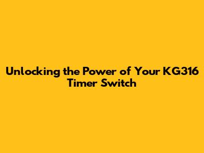 Unlocking The Power Of Your KG316 Timer Switch