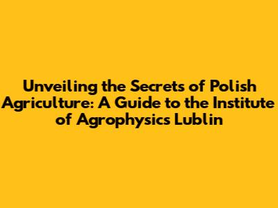 What is the Institute of Agrophysics Lublin? – A Deep Dive