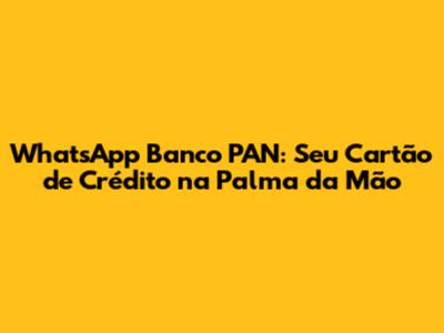 WhatsApp Banco PAN: Tudo Sobre Seu Cartão De Crédito